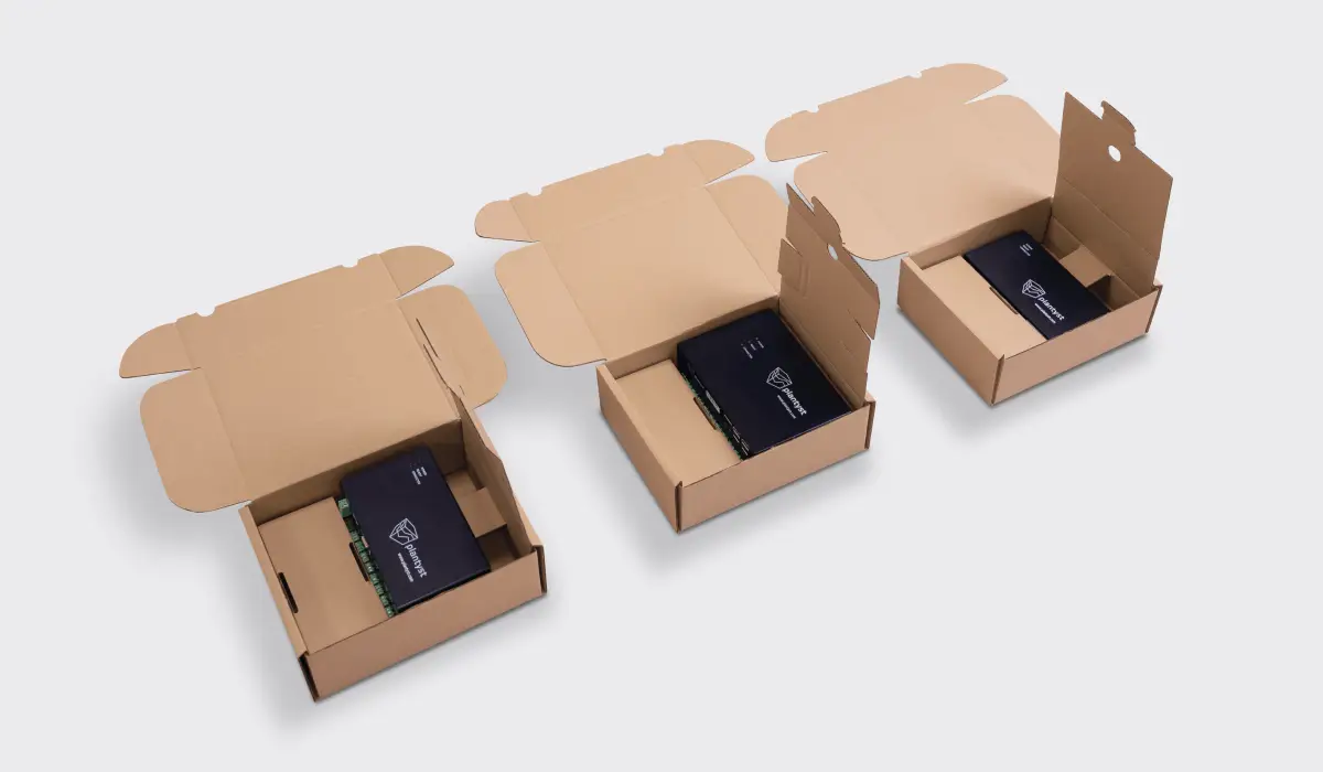 Plantyst řešil balení tří velikostí svého hardwaru – my jsme ale nechtěli vyrábět tři odlišné vložky, tři různé krabice ani držet tři samostatné skladové položky. Navrhli jsme proto jednu univerzální fixační vložku, která nabízí: